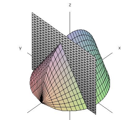 I've drawn the plane in red this time to make the cross-section more easily visible;